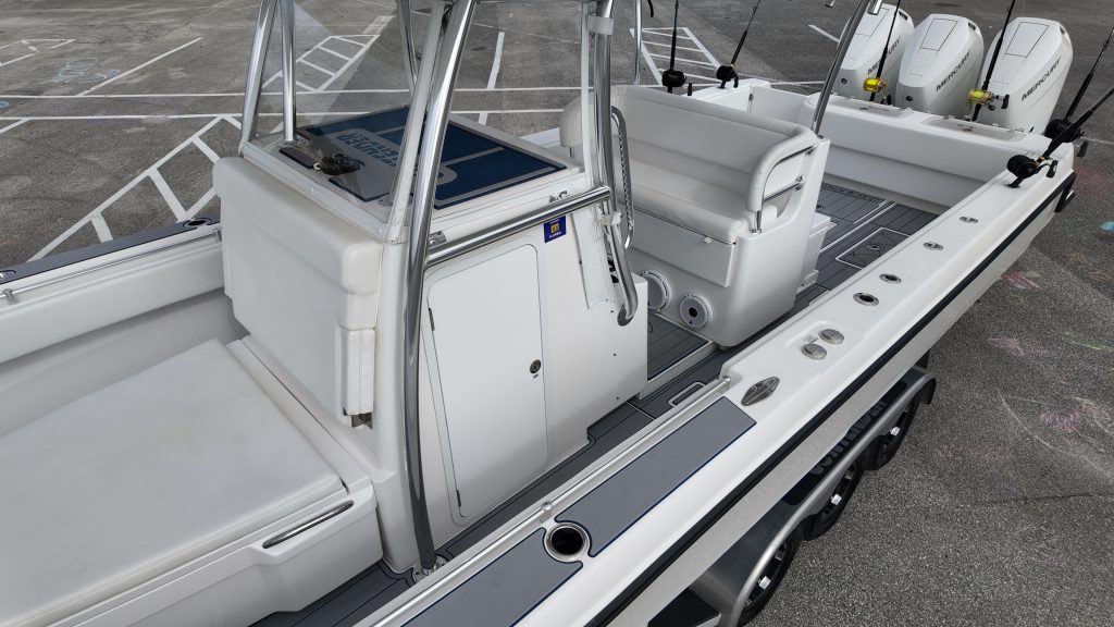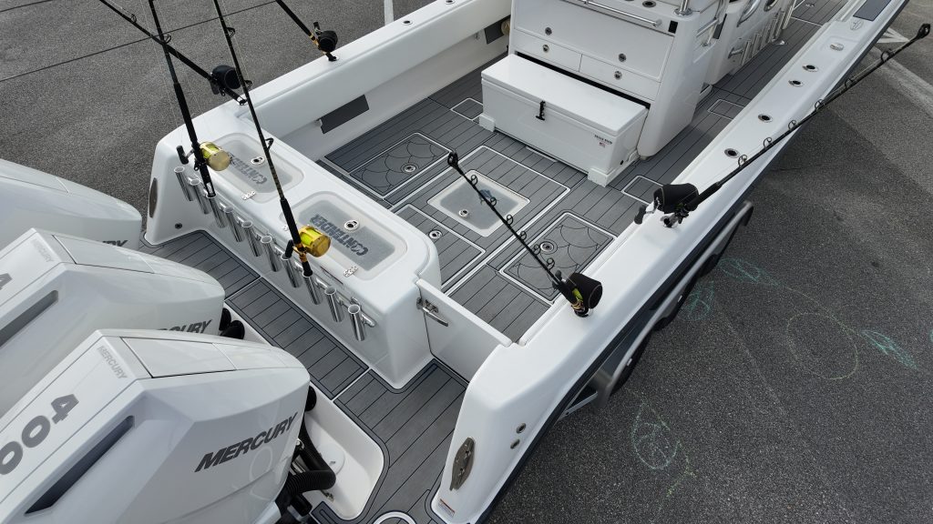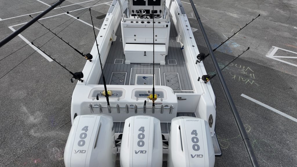 What sets this boat apart from the others??? She is a 2024 Garage kept beauty, sporting trip Mercury 400 V10 that can push this beauty to 70 MPH in under a minute, cruises upper 40’s at 1-MPG. 500 GAL of fuel capacity, a max horsepower rating of 1600 HP and one of the most advanced and thought-out fishing platforms on the water, the Contender 39ST will leave your competition in the dust. The 39St comes packed with a long list of standard features.